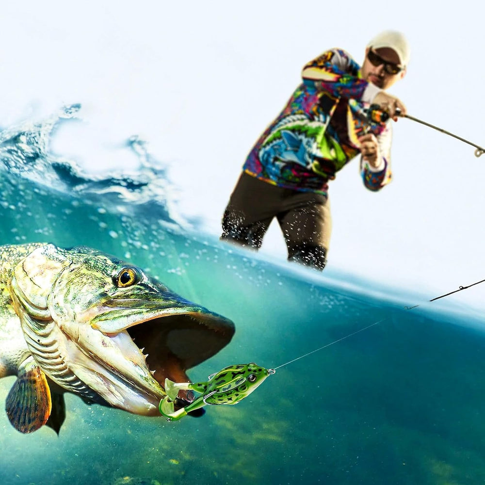 Diverse Set: This package includes 10 frog fishing lures in various colors, providing options to attract different fish species in both freshwater and saltwater environments.