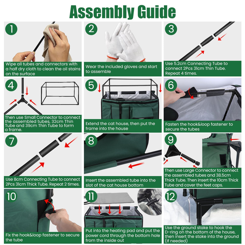 *Multi-Usage Cat Shelter*:Requires no tools for assembly. Ideal outdoor winter shelter for garages,porches,barns,or cooler indoor areas—providing a warm cat cave with a built-in heating pad.