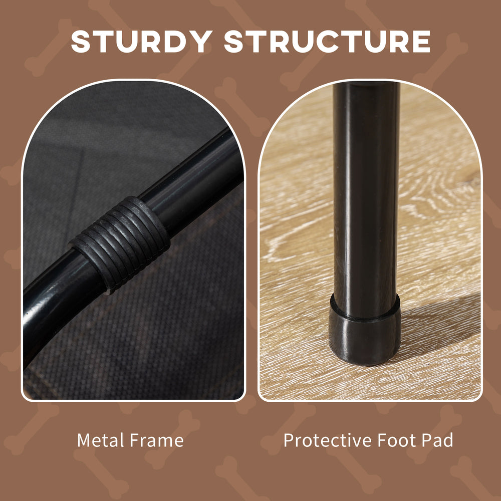 Treat your pet to a cozy place to relax with an elevated pet bed . The dog cot bed lifts your pet more than 7" off the ground which allows air to flow freely on all sides and underneath. This elevated dog cot can support up to 66 lbs. An included canopy top provides shade to your pet and shields them from the sun on hot summer days. A simple design means all you have to do is plug the canopy into the corners of the cot and secure it with the bungee cords.